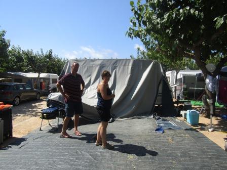 Onder het tentje leggen we altijd een plastic zeiltje.