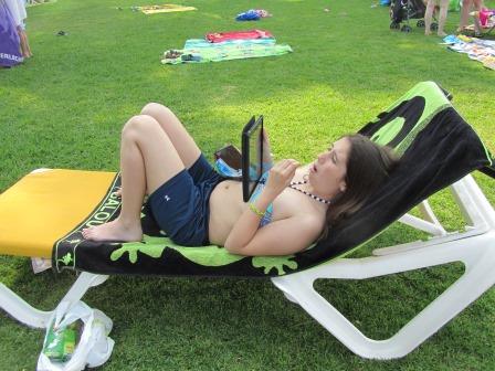 Voor Claudia hoeft dat niet, die ligt lekker in de schaduw met de iPad. Alsof ze hier nooit is weggeweest!