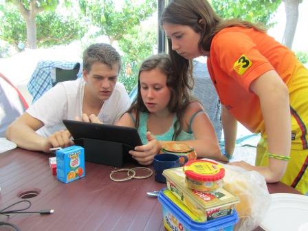 Eenmaal terug op de plek schieten de dames gelijk achter de iPads. Gezellig... Nou ja, dan ga ik ook maar alvast wat aan de site doen. Scheelt morgen weer.