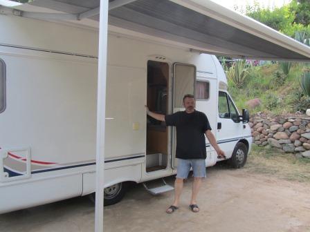Niet veel later komt hun caravan. De man rijdt hem behendig zo ver mogelijk op de plek.