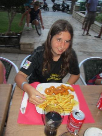 Claudia heeft weer haar favoriete gerecht: Calamaris, inktvisringen.