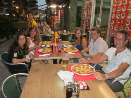 Zoals gezegd, het is niet veul, en rond 11:30 uur gaan we alweer terug. Ja, tot het eerste de beste terrasje: Grand Café Salou. Lekker effe bijkomen, met een lekker windje over het terras. Nu voelt Claudia zich niet zo lekker. Ze krijgt haar cola niet op, en zegt: "Mama, kijk eens daar!". Maar mama is niet gek: Claudia probeert haar cola bij mama te dumpen. Ja, dan moet je vroeger op staan!