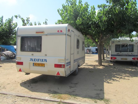 Enfin, goed een klein half uurtje later komen we naar buiten, en kunnen naar onze plek. "Hoe zou het zijn met onze caravan", vragen we onszelf af... Maar als we aan komen rijden, staat ie daar netjes. Helemaal afgespoten en glimmend staat ie ons op te wachten. Alleen vergeet ik hier een foto van te maken. Corina schiet naar binnen, maar is aangenaam verrast: Nog helemaal netjes, nog geen stof in de bekers!