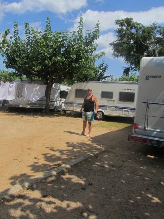 Ze hebben de laatste plaats op ons laantje, maar Wilco rijdt de camper behendig op zijn plek. Af en toe even goed kijken.