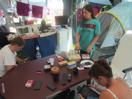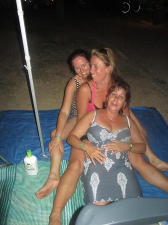De dames hebben weinig meegenomen, die hebben bedjes en een luifel gehuurd. Tja zonder mannen nemen ze het er mooi van!