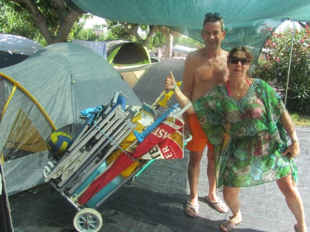 Onze achterburen zijn klaar voor vertrek, en Claudia en ik nemen afscheid. (De rest is weg!). Prettige reis, en misschien tot volgend jaar.