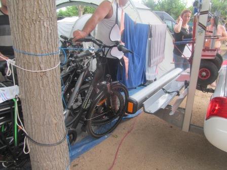 Onze buren komen kijken, en vertellen dat zij het los hebben gemaakt, en het raam dicht. Dat is ook camping leven.