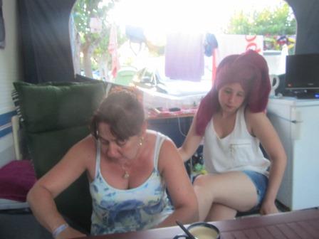 Daarna leest Corina nog verder in haar boek, speelt Claudia op haar DS, en maak ik het verslag voor vandaag af.
