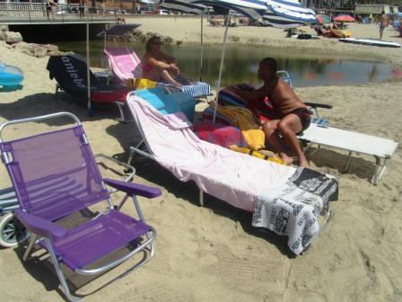 Dan graag op het strand en niet als we onderweg zijn, met al die spullen.
