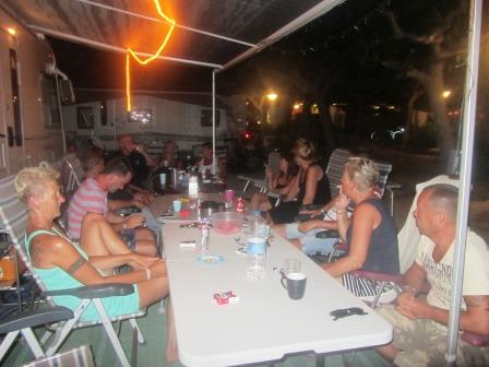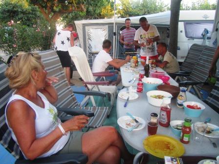 Alle kids hebben een plekkie gevonden bij Angela en Pat onder de luifel.