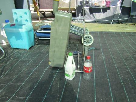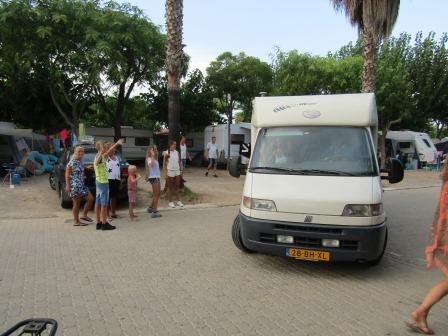 Als we bij de caravan aankomen is het weer gruwelijk heet. Dus eerst zorgen voor wat verkoeling.