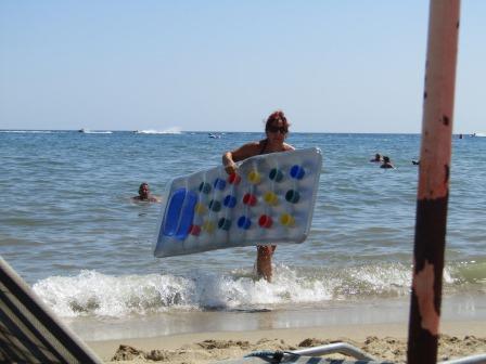 Maar dat merken zij ook en al snel zijn ze weer op het luchtbedje in zee te vinden.