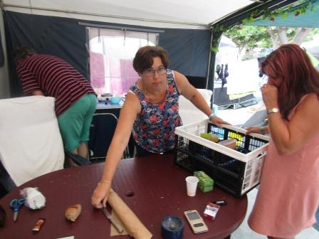 En dan is het langs alle kraampjes met riemen, tassen, kleren... en schoenen, he Elfried?